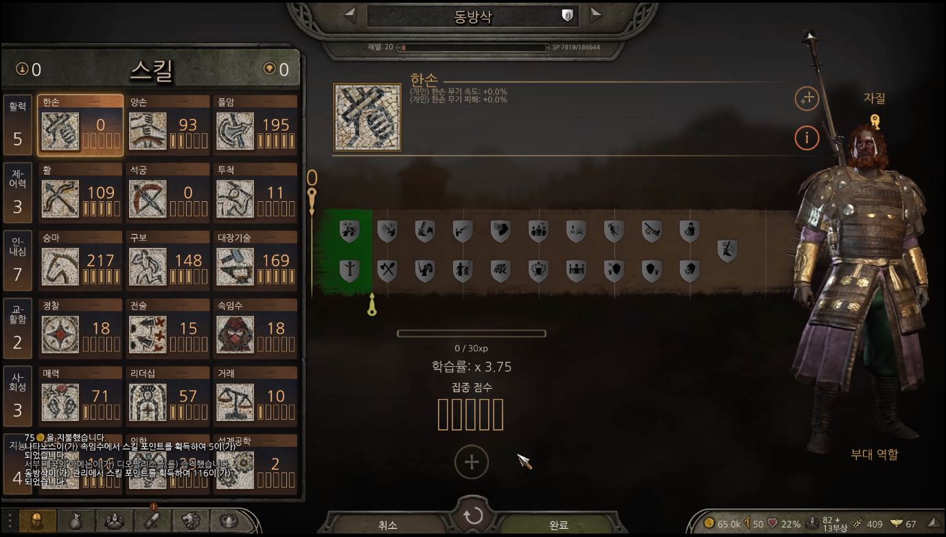 폴암과 승마가 200쯤 되어가고 활과 양손, 구보도 많이 올랐습니다.