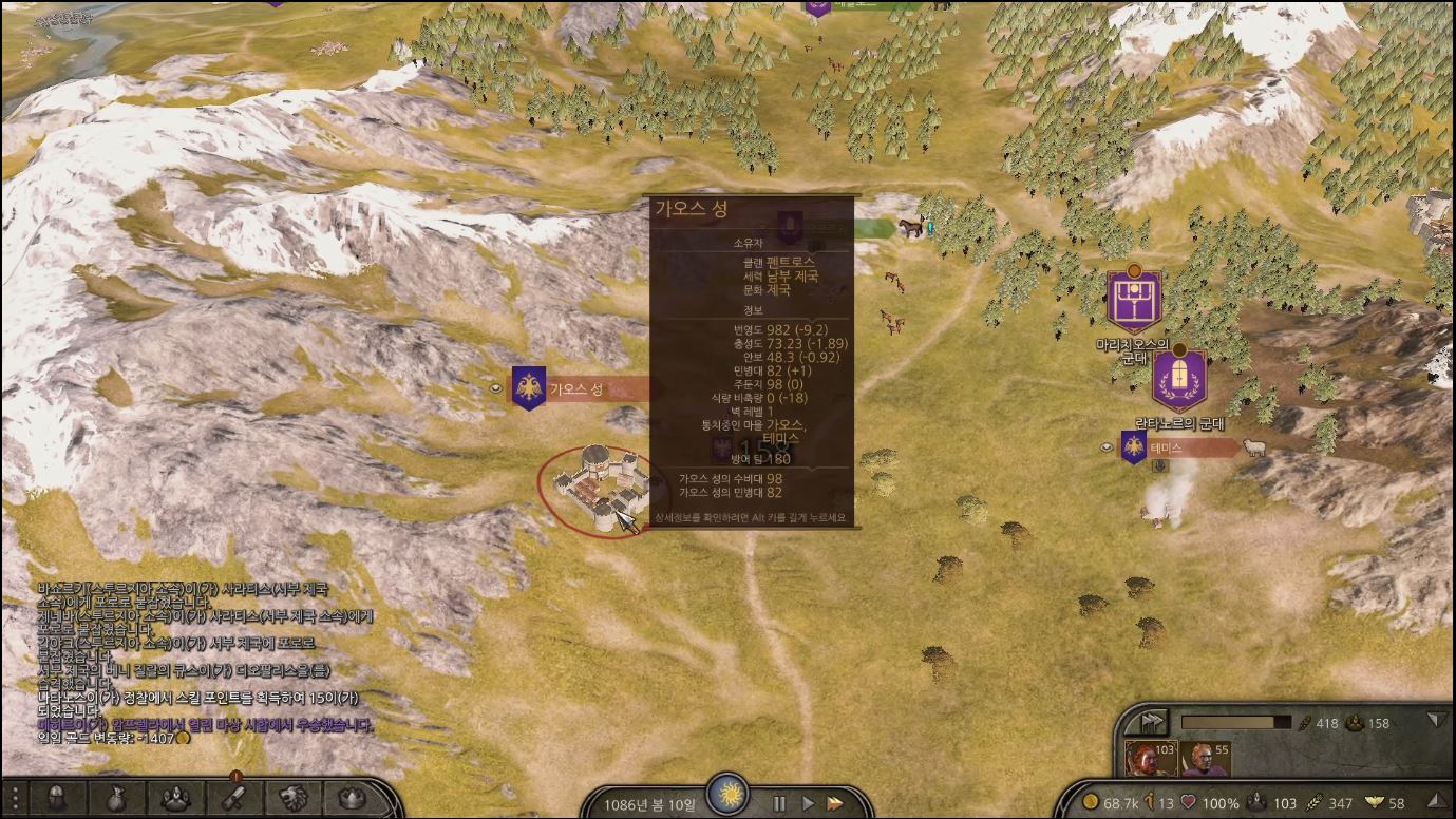 가오스 성도 뺏기고 말았습니다.. 중간에 저 군대들이 안오고 저 혼자 공략했더라면 가오스성을 소유할수 있었을텐데 아쉽네요