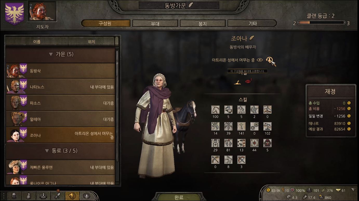 전투를 하면서 모인 영향력을 사용해 다른 영주 몇명을 불러보아 줍니다.