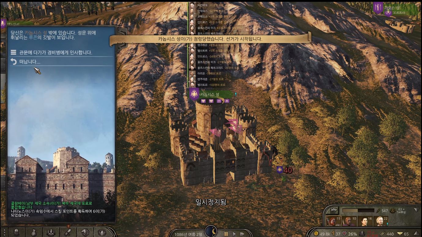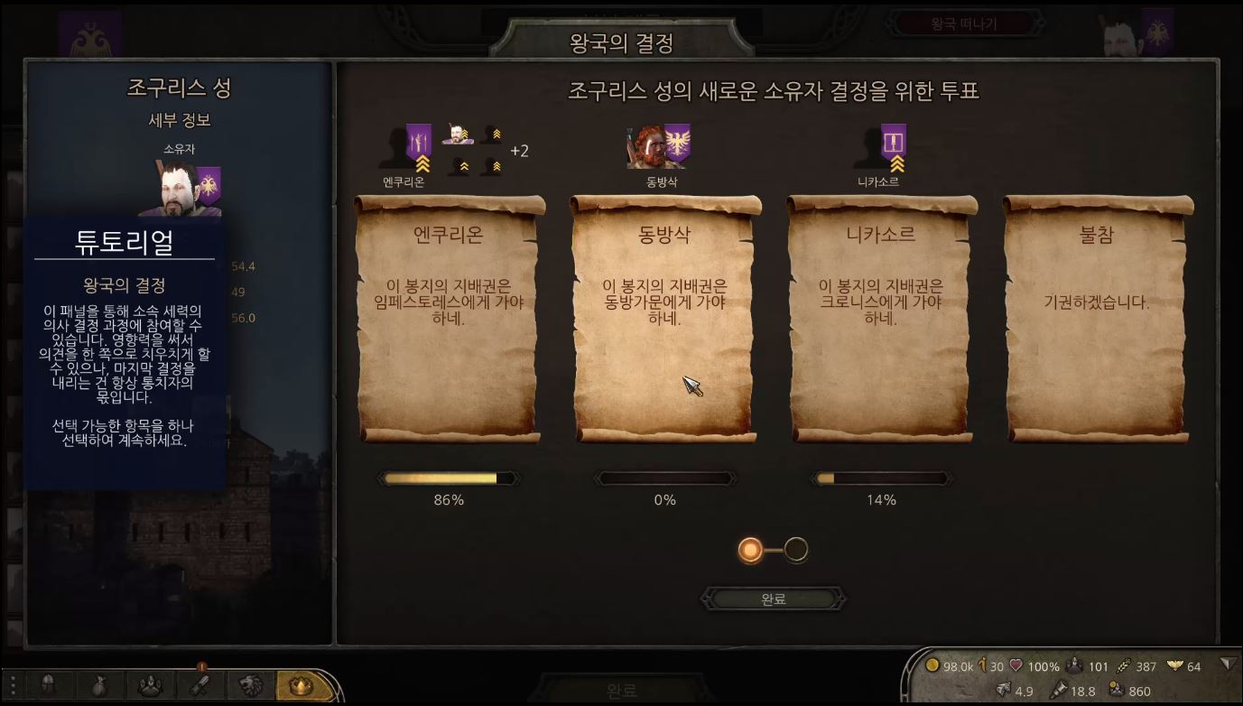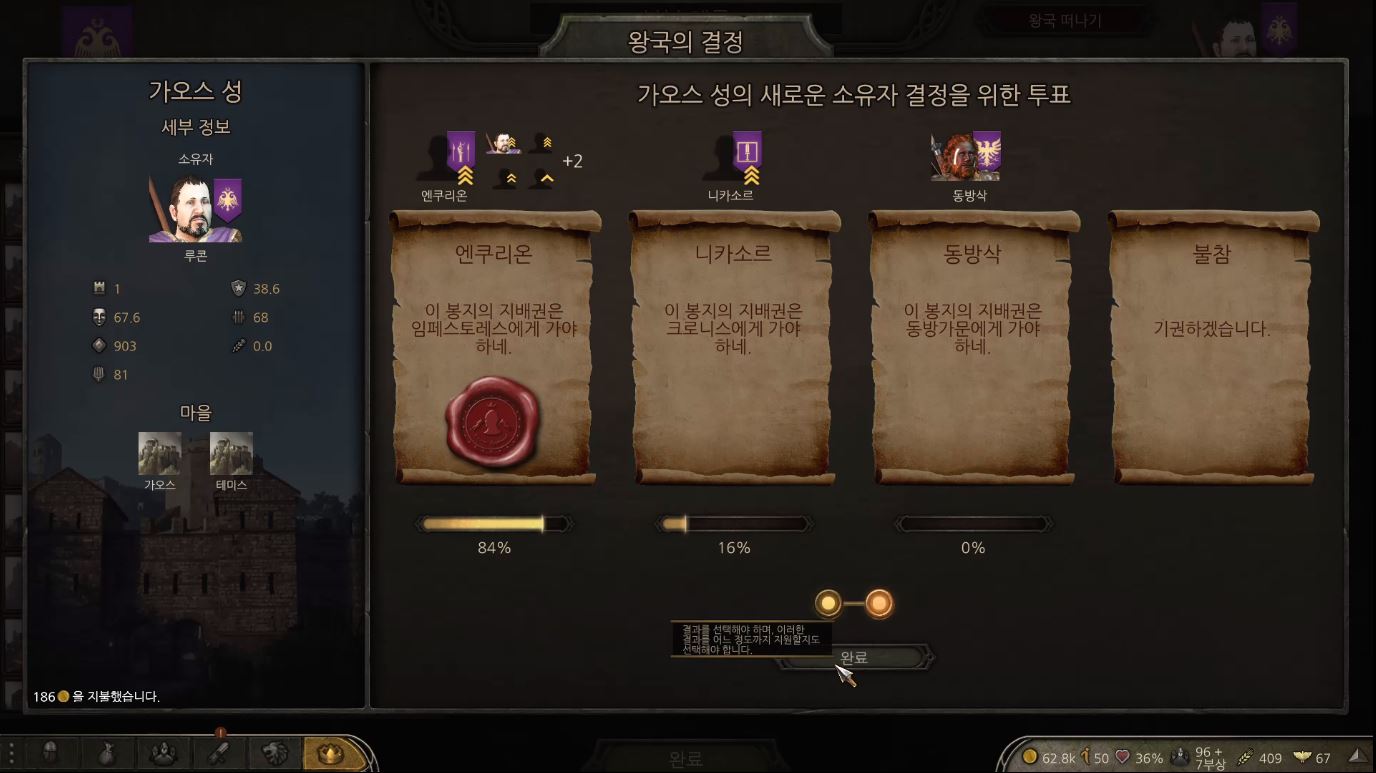 어느순간 공성전이 완료되고 성의 소유자를 가리는 투표가 진행됩니다.
