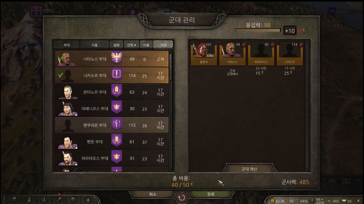 형제에게 부대를 창설하게 만든뒤 군대를 창설해 같이 다니면 병력수가 150~200이 유지가 됩니다.