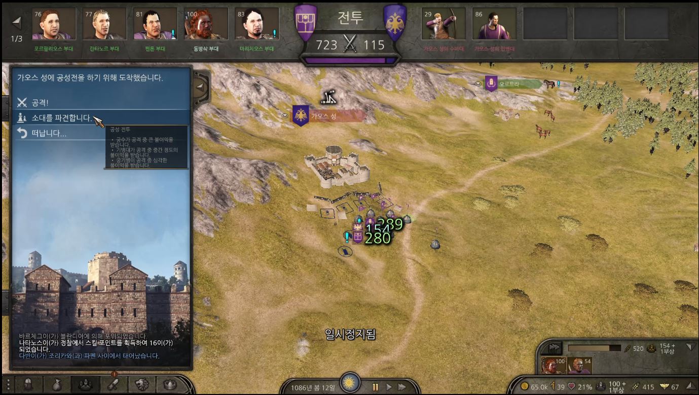 여러 전투를 지켜보면서 공략할수 있을만한 성 하나를 골랐습니다.